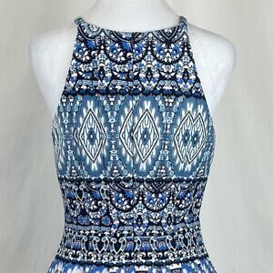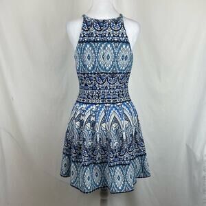 Vince Camuto Blue White Print Fit & Flare Party Date Night Dress NWOT Size 6