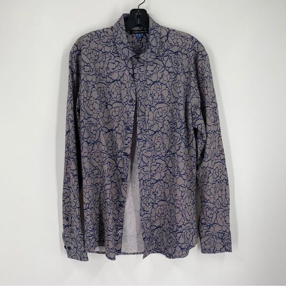 Vince Camuto Blue Paisley Lightweight Button Front Shirt size M
