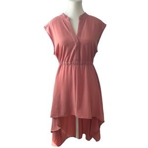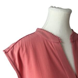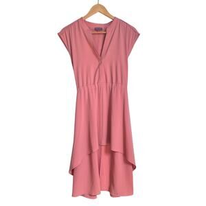 Vince Camuto Blush Cap Sleeve Split Neck Blouse Women's Size Large Hi Low Hem