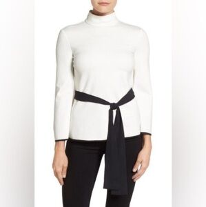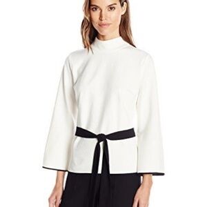 Chic blush top by Vince Camuto. Features stylish black tie and trim. Perfect for versatile styling.