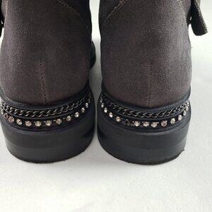 Vince Camuto Bobette Biker Boot Womens 9 Gray Suede Buckles Chunky Combat Stud