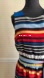 Bold print midi dress in vibrant red, blue, and yellow. Sleeveless, sleek silhouette perfect for cocktail parties, weddings, or special occasions. Stretchy fabric for comfort and all day wear.