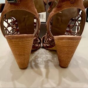 Vince Camuto Bootie Adult 8.5 Smoke Taupe VC-Evel Caged Stacked Block Heel Open Toe Women