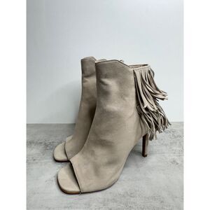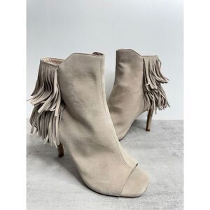 Vince Camuto Booties Size 5 Tan Suede Fringe Stiletto Heels Open Toe
