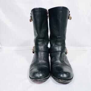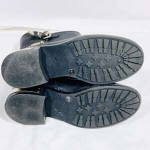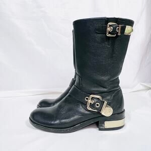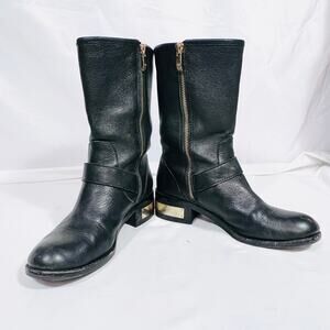Vince Camuto Boots 7M Black Leather Gold Buckle Mid High Moto Biker Used