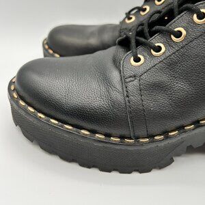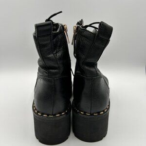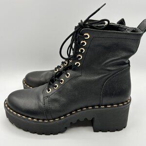 Vince Camuto Boots 8M Black Leather Mecale Lug Sole Combat Boots Lace Up