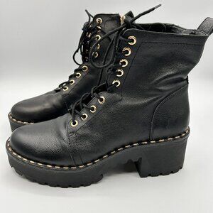 Vince Camuto womens size 8M black Mecale lug sole biker/combat boots. Lace up with side zipper closure.