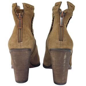 Vince Camuto Boots Sz 6M Fretzia Brown Suede Ankle Bootie Perforated 3.5” Heel