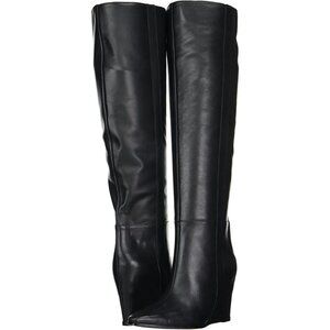 Vince Camuto Boots Tiasie Over the Knee Wedge Boots Black Leather SZ 7.5 NEW