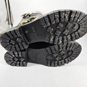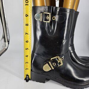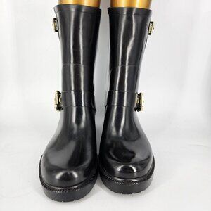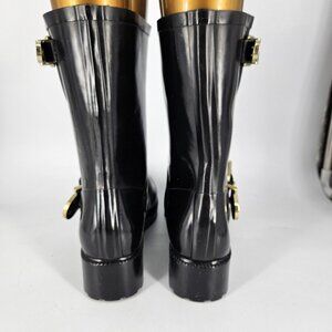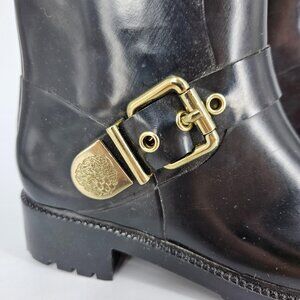 Vince Camuto Boots Womens Size 7 Black VC Hinch Rubber Rain Moto Gold Buckle