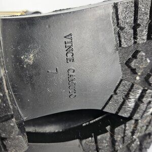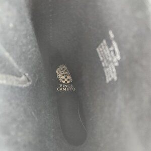 Brand markings: VINCE CAMUTO stamped on outsole and insole; crest logo on buckle guards