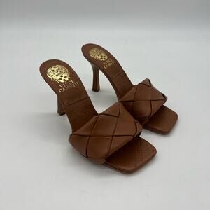 Vince Camuto Brelanie Woven Strap Mule Heels Barn Brown Womens Size 5.5
