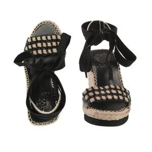 Vince Camuto Brisshel Leather Espadrille Wedge Sandal | Black & Natual | Sz 8.5