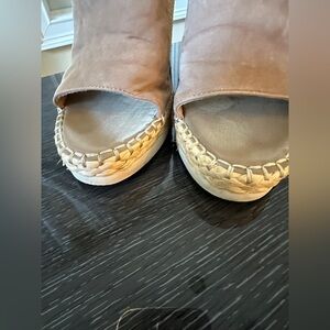 Vince Camuto Brissia Wedge Platforms Sandals Mules Tortilla Leather 8.5 shoes