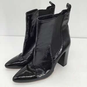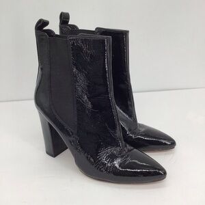 Vince Camuto Britsy Patent Leather Block Heel Booties Modern Black Size 7