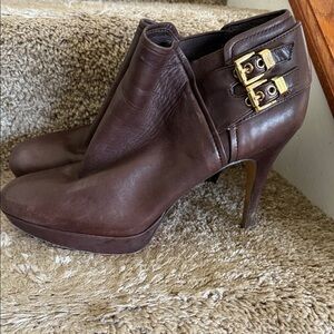 Chic brown leather booties by Vince Camuto. Perfect for elevating any look.