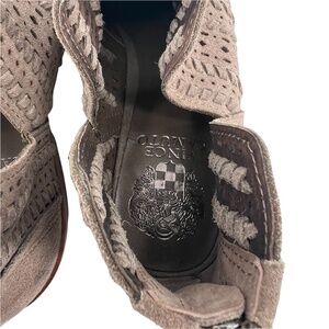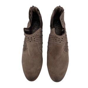 Vince Camuto Brown Perforated V-Cut Block Heel Ankle Boots Size 9 1/2 Women’s