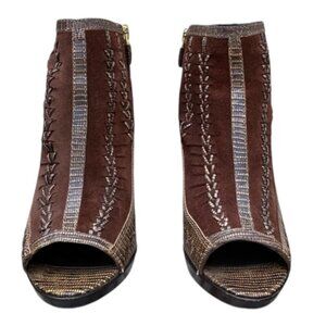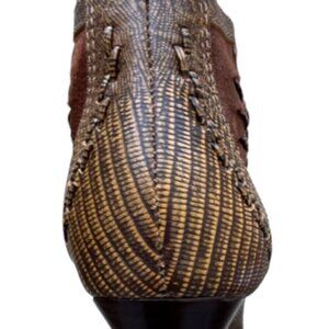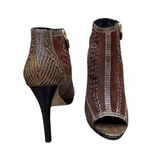 Vince Camuto Brown VC-Night Woven Leather Peep Toe Side Zipper 4.5" Shoes 8.5B