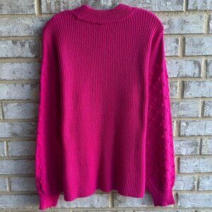 Vince Camuto Bubble Stitch Long Sleeve Crew Neck Cotton Blend Pink Sweater Women's Size L.