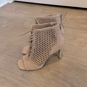Vince Camuto Cage Lace & Zip Up Suede Heels