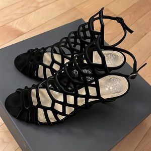 Vince Camuto Cage Style Paxton Sandals Black Nubuck Leather Excellent Condition In original box F