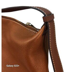Crafted with premium genuine leather, this Vince Camuto shoulder bag offers a sophisticated design. Its caramel hue and adjustable strap ensure both elegance and practicality.