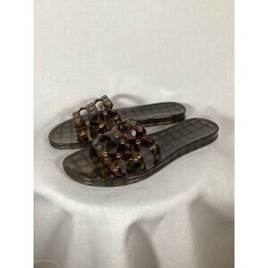 Vince Camuto Carron Jelly Slides T-Strap Sandals. Tortoise/ Gold Studded. Womens size 9
