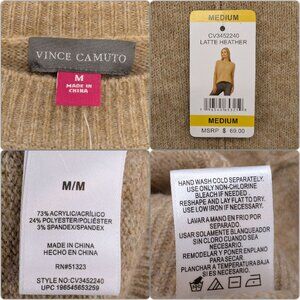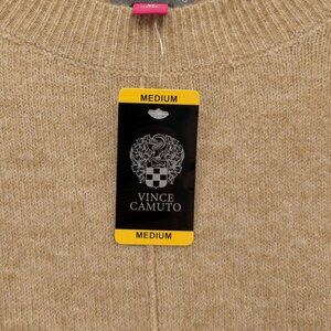 Vince Camuto Center Seam Crewneck Sweater Womens Latte Heather Tan Sz M NWD