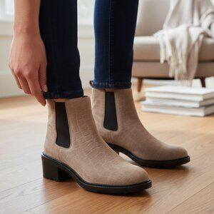 Vince Camuto Chelsea Kelivena Sable Croc Embossed Suede Tall Ankle Size …