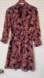 This super cute dress is a knee-length dress with long sleeves, a ruffled neckline, and a cinched waist. It has a tie around the waist and side pockets. The dress features a paisley print in shades of navy, red, and orange. It’s made of a lightweight, flowy fabric, perfect for the warm weather! Fully lined.