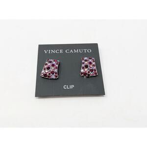 Vince Camuto Clip On Earrings Silver Tone Rectangular Red Rhinestone New