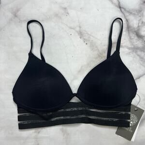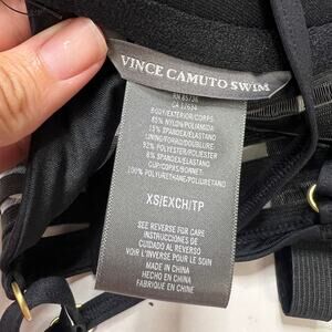 Vince Camuto Coast Line Mesh Banded Bikini Top Size XS Black New V70671