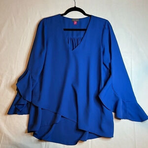 Vince Camuto Cobalt Blue Tunic Blouse Flouncy Sleeves Women’s Medium NEW