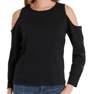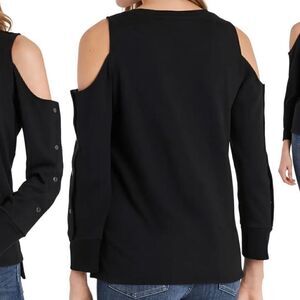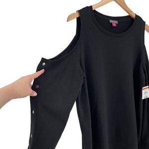Vince Camuto Cold Shoulder Sweatshirt Top Crewneck Long Sleeve Black Women Large