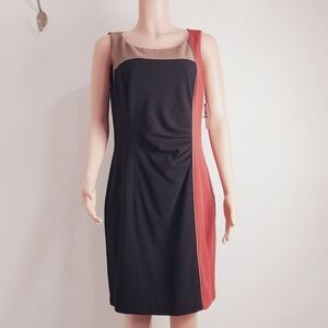 Vince Camuto Color Block Sheath Sleeveless Burnt Orange Black Brown Size: 14