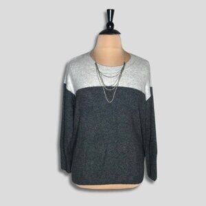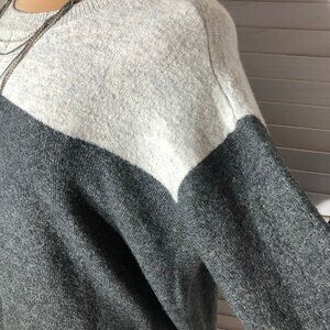Vince Camuto Color Block Sweater Dropped-Shoulder Sleeves Light Gray/Charcoal 2X