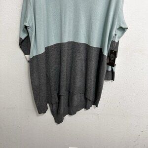 Vince Camuto Colorblock V-Neck Asymmetrical-Hem Sweater, Light Green Gray Sz 2X