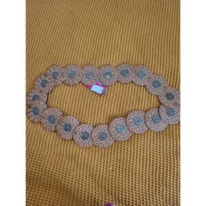 This unique belt is brand new with tags! It is a size L / XL and in length is 48". It can be adjusted to any size due to its style, the hook closure can go into any grommet hole along the belt!