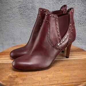 Vince Camuto Consheta Leather Studded High Heel Booties 8.5M Red MSRP $129
