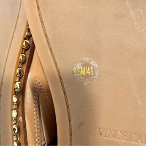 BRAND NEW without box. Vince Camuto leather slip on sandals. Tan, beaded trim accents. Size 10. MSRP $158
