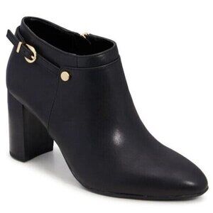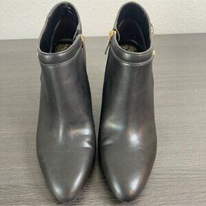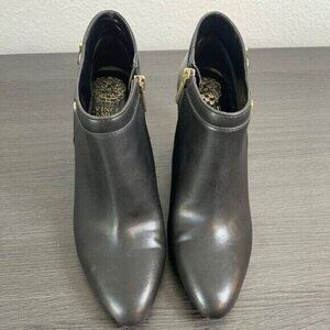 Vince Camuto Coorin Black Leather Ankle Boots 9.5 Gold Zip Block Heel Timeless