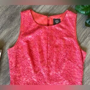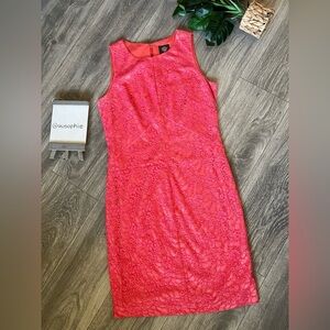 Vince Camuto Coral Lace Overlay Sleeveless Sheath Cocktail Dress. Size 6