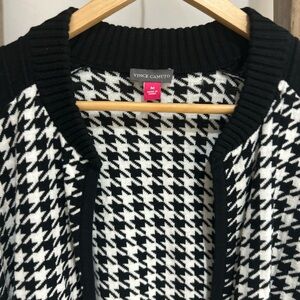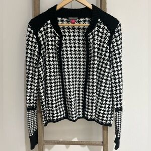 Vince Camuto Cotton Houndstooth Knit Sweater Jacket Cardigan Black White Size M