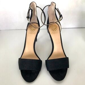 Vince Camuto Court Black Shimmering Ankle Strap High Heel Sandals.