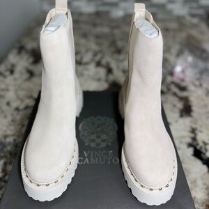 Vince Camuto Cream Chelsea Combat Boots with Studded Sole