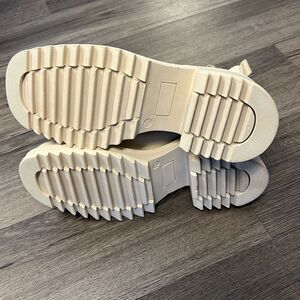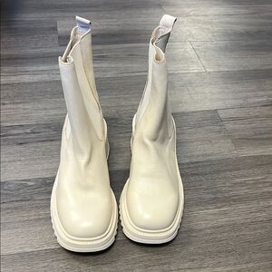 Stylish cream leather ankle boots. Chunky sole for added comfort. Perfect for any outfit.