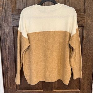 Elegant cream and tan color block sweater by Vince Camuto. Ideal for any occasion. Perfect for fall and layering. Worn only a few times for short periods.