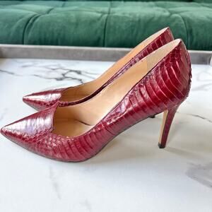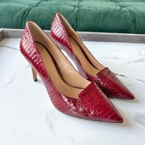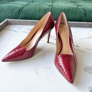Vince Camuto Croc Embossed Burgundy Leather Pointed Toe Heels 6.5