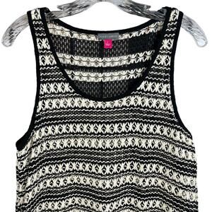 Sleeveless Knit top. By Vince Camuto. Black and white. Bohemian style crochet style high lo tank. Can be worn as a swim cover, or dress. No rips, or stains. Size Large.