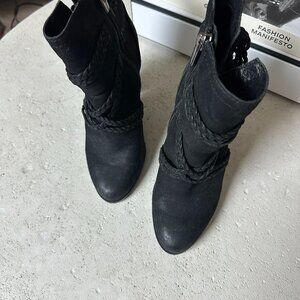 Vince Camuto Cyndia Leather Criss Cross Braided & Fringe Strap Ankle Heel Boot S